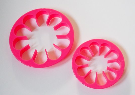 Set comprises of 2 set of cutter for cutting Dahlia petals and a former