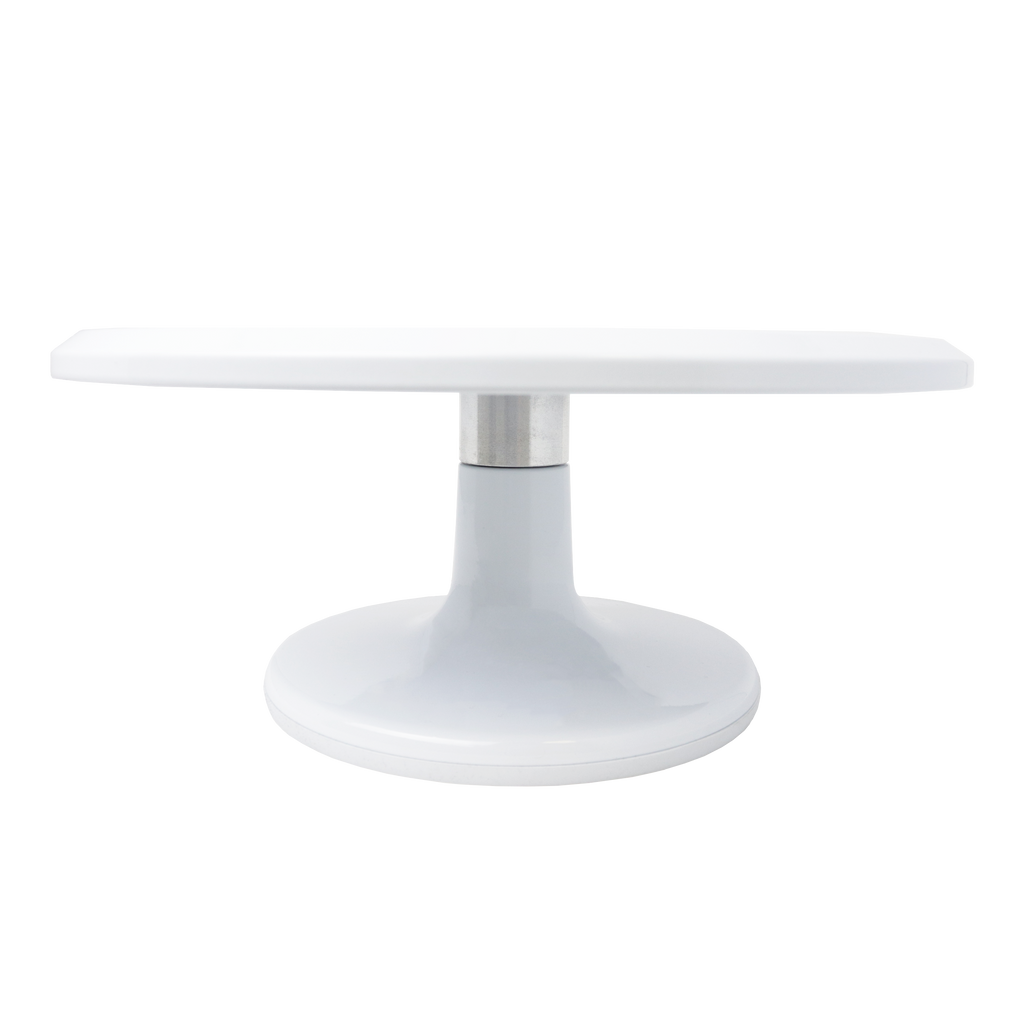 PME's Professional Metal Turntable makes coating your cakes in ganache, buttercream or royal icing easy for even novice bakers. It is also a great tool for airbrushing, painting, and piping borders.